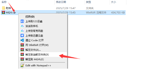 情况2:若part1结尾的程序时.rar的压缩包,则需要实用Winrar或者7进行解压:鼠标右键单击以part1结尾的文件,然后选择解压到当前文件夹,其余文件会伴随解压。